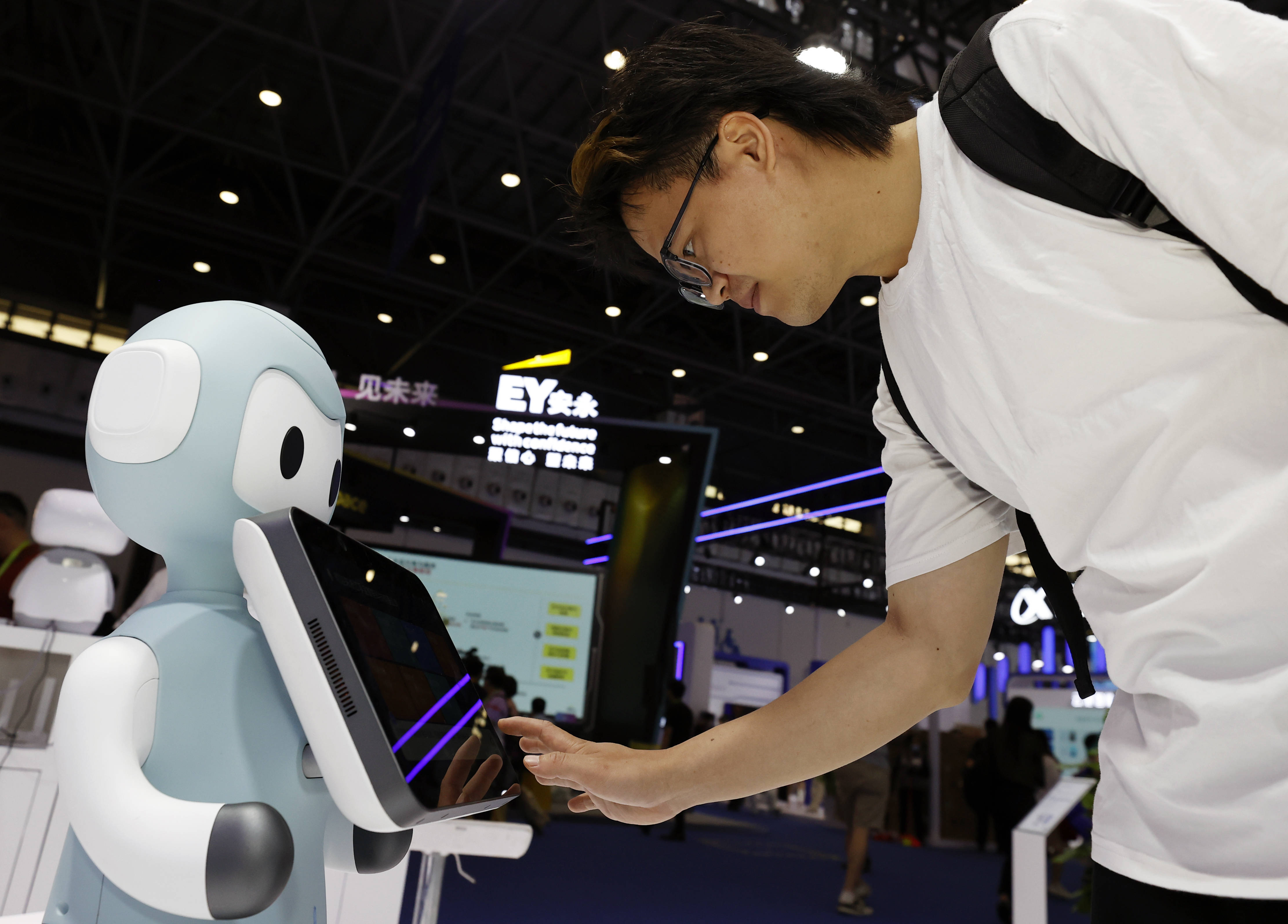 “我们在消博会上全球首发最新一代机器人,手臂可以活动,触摸感更强。”浙江孚宝智能科技有限公司政企事业部副总裁党维纳介绍,通过不断调试,这款康养陪伴机器人能逐渐理解老人的心理活动,提供有温度的情感陪伴。